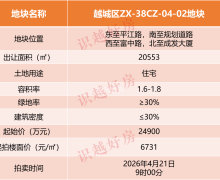 2026越城首拍!迪荡平江路宅地,起拍价6731元/㎡,4.21出让
