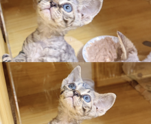 虎斑妹妹一枚,德文卷毛猫,可爱至极!小翘鼻,粘人精!喜欢就联系我吧